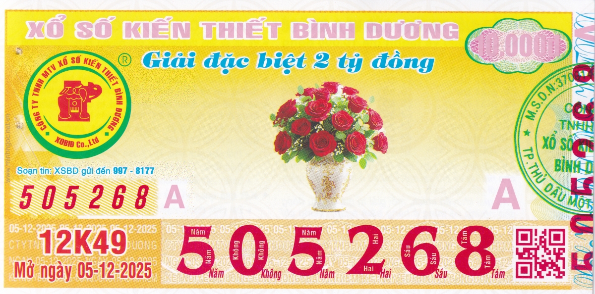 Mẫu vé kiểm tra khi đổi số trúng Bình Dương Ngày: 05/12/2025
