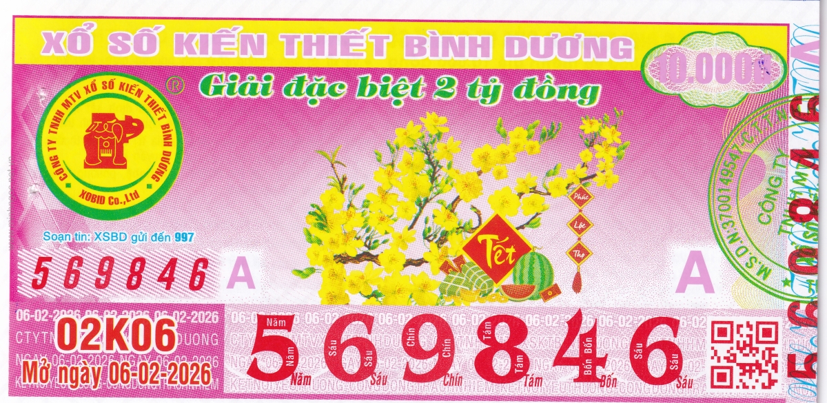 Mẫu vé kiểm tra khi đổi số trúng Bình Dương Ngày: 06/02/2026