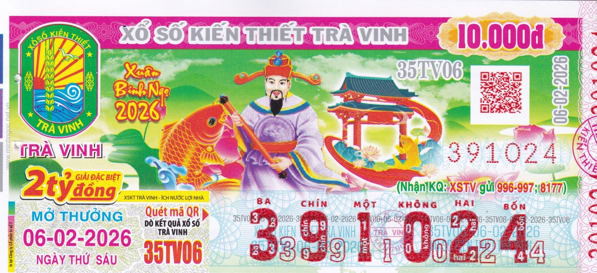 Mẫu vé kiểm tra khi đổi số trúng Vĩnh Long Ngày: 06/02/2026