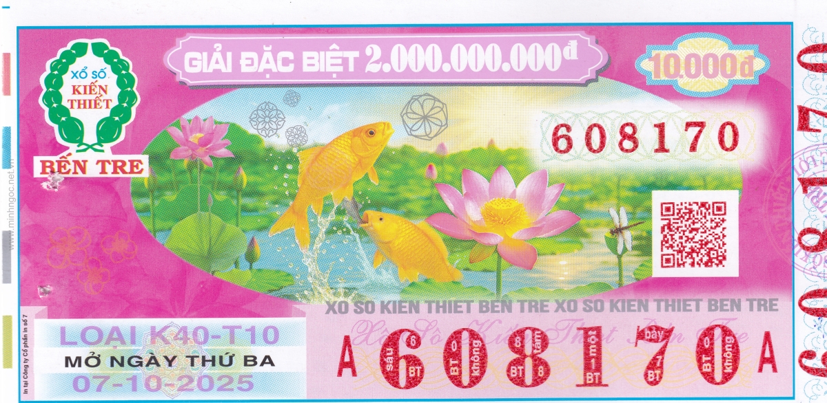 Mẫu vé kiểm tra khi đổi số trúng Bến Tre Ngày: 07/10/2025