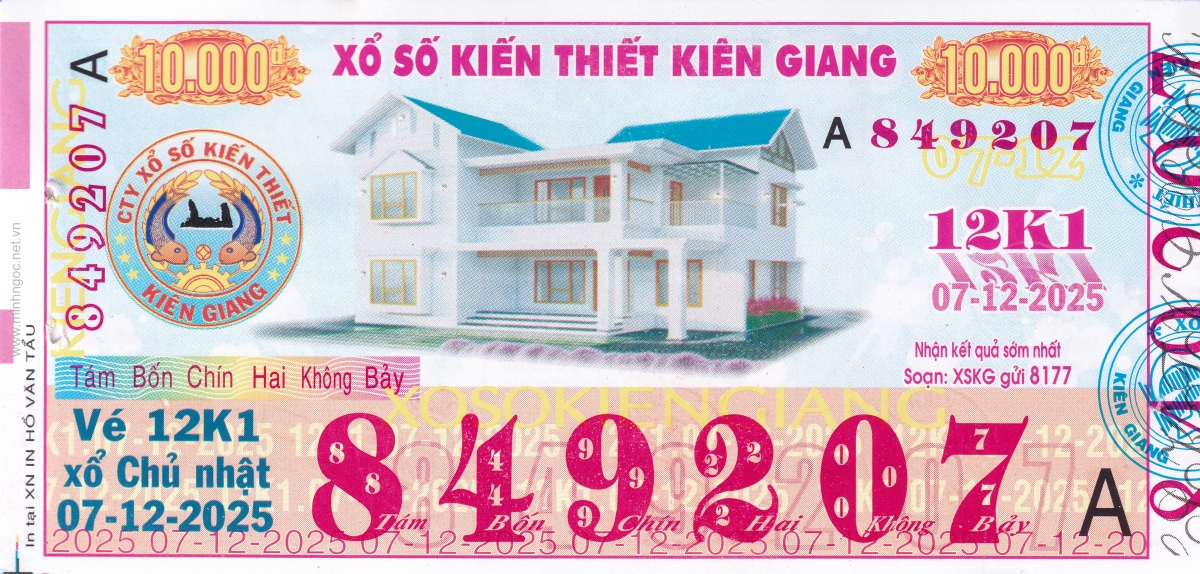 Mẫu vé kiểm tra khi đổi số trúng Kiên Giang Ngày: 07/12/2025