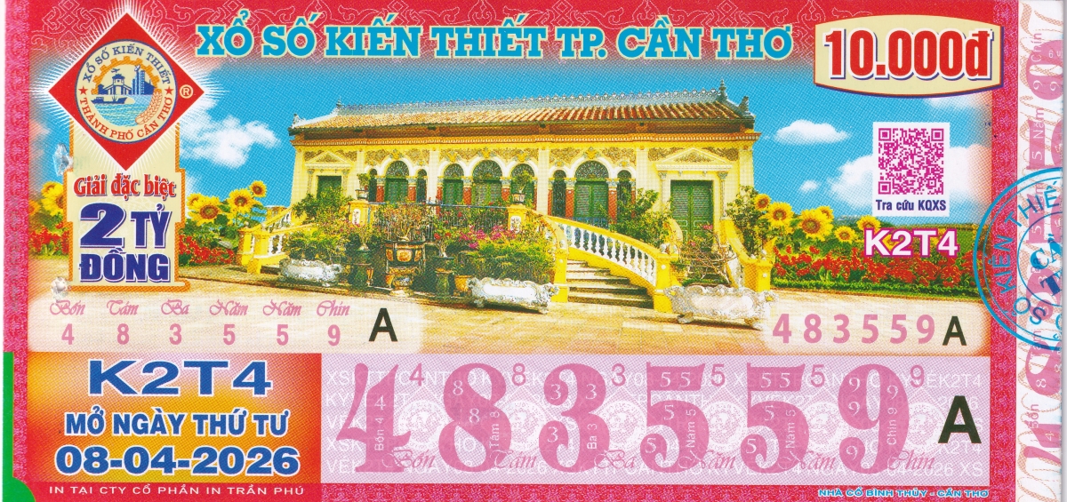 Mẫu vé kiểm tra khi đổi số trúng Cần Thơ Ngày: 08/04/2026