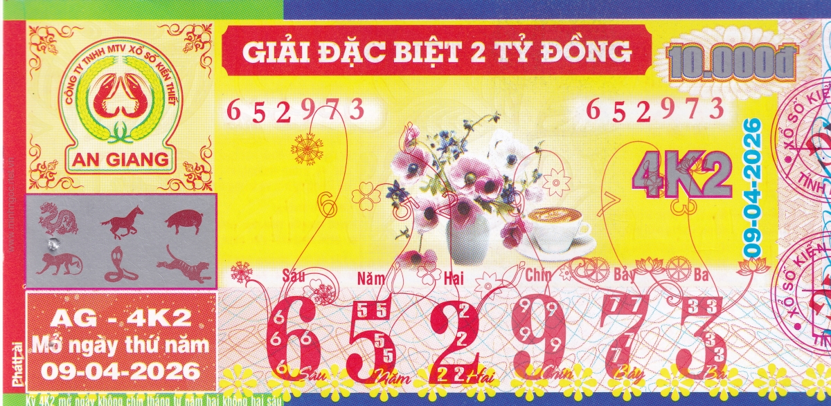 Mẫu vé kiểm tra khi đổi số trúng An Giang Ngày: 09/04/2026