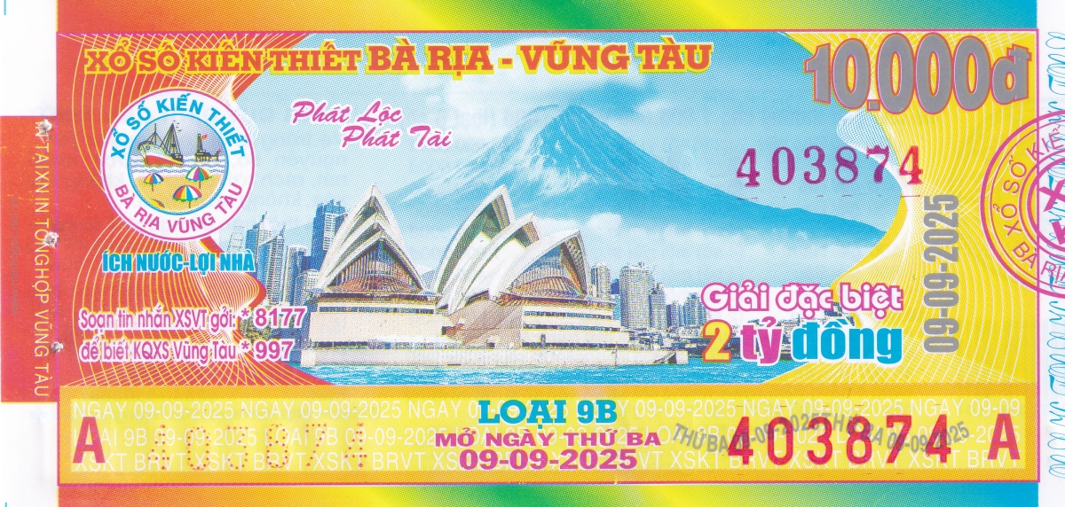 Mẫu vé kiểm tra khi đổi số trúng Vũng Tàu Ngày: 09/09/2025