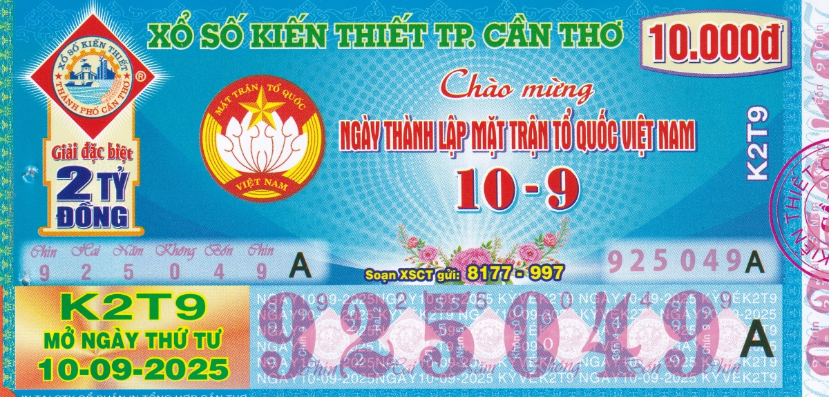 Mẫu vé kiểm tra khi đổi số trúng Cần Thơ Ngày: 10/09/2025