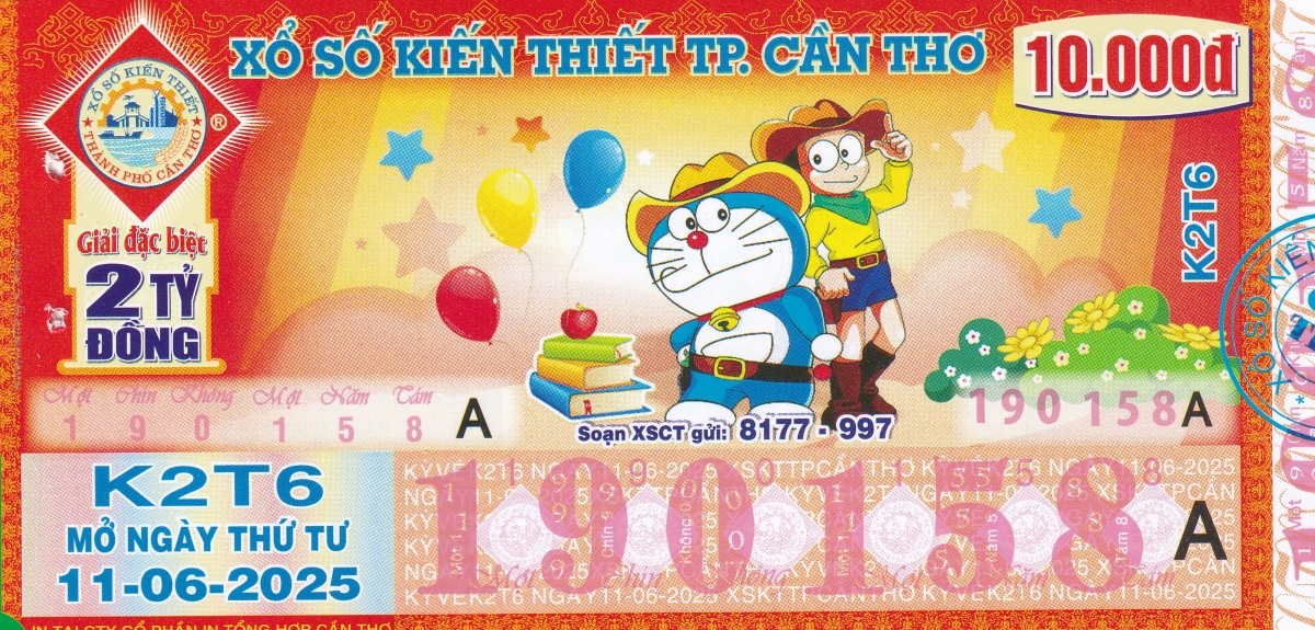 Mẫu vé kiểm tra khi đổi số trúng Cần Thơ Ngày: 11/06/2025