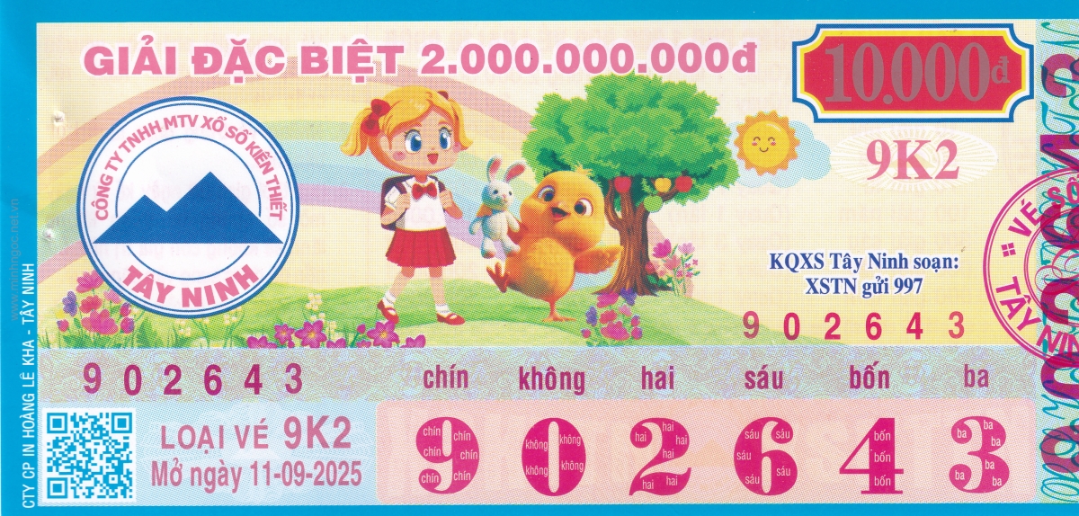 Mẫu vé kiểm tra khi đổi số trúng Tây Ninh Ngày: 11/09/2025
