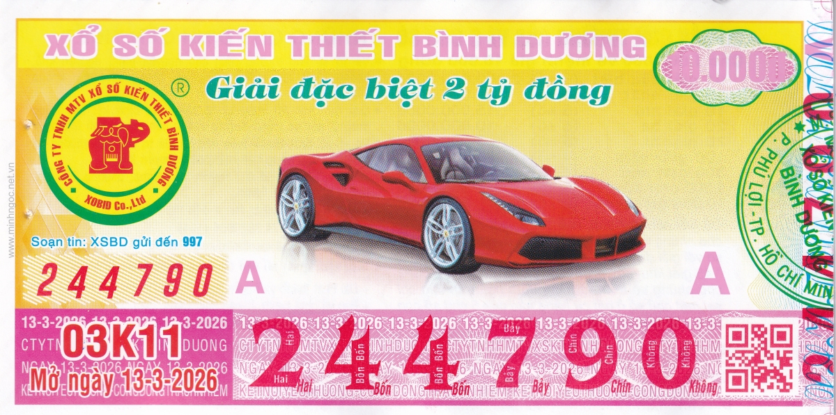 Mẫu vé kiểm tra khi đổi số trúng Bình Dương Ngày: 13/03/2026