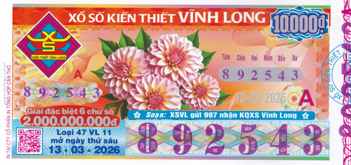 Mẫu vé kiểm tra khi đổi số trúng Vĩnh Long Ngày: 13/03/2026