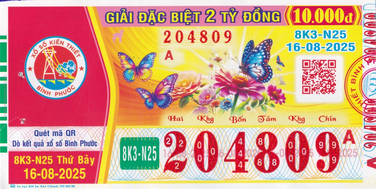 Mẫu vé kiểm tra khi đổi số trúng TP. HCM Ngày: 16/08/2025