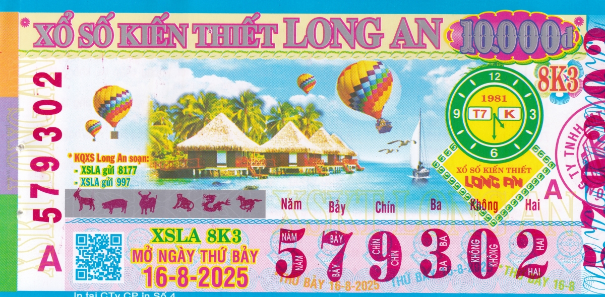 Mẫu vé kiểm tra khi đổi số trúng Long An Ngày: 16/08/2025