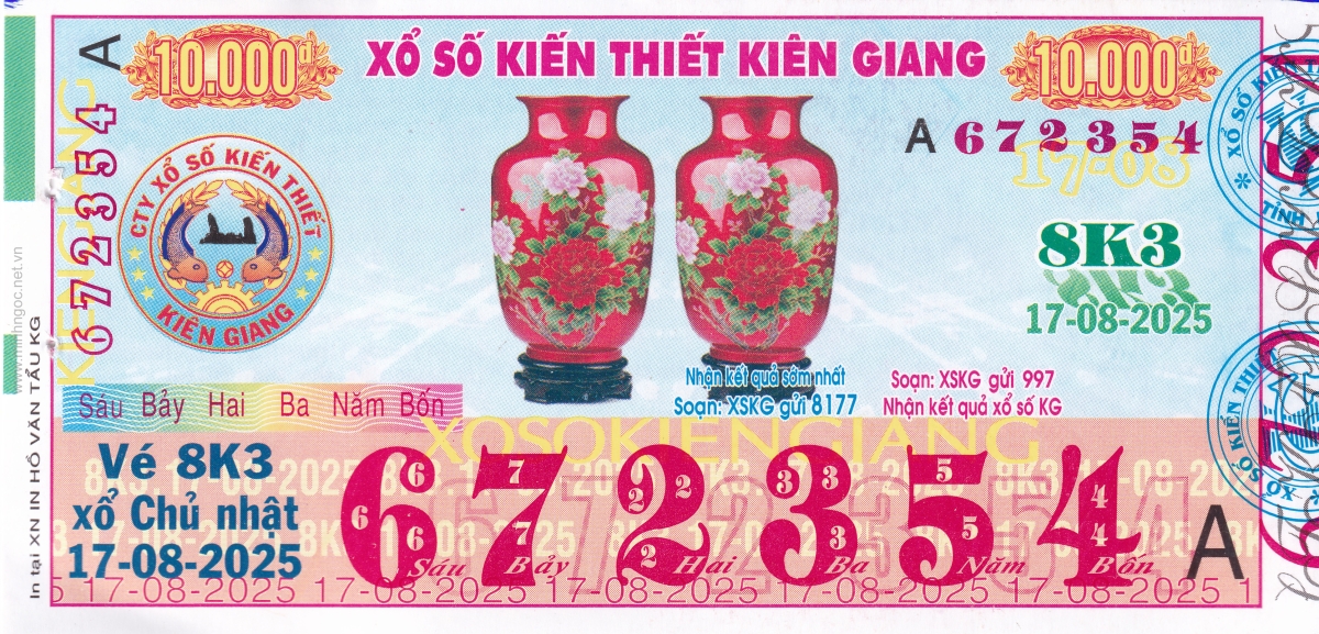 Mẫu vé kiểm tra khi đổi số trúng Kiên Giang Ngày: 17/08/2025