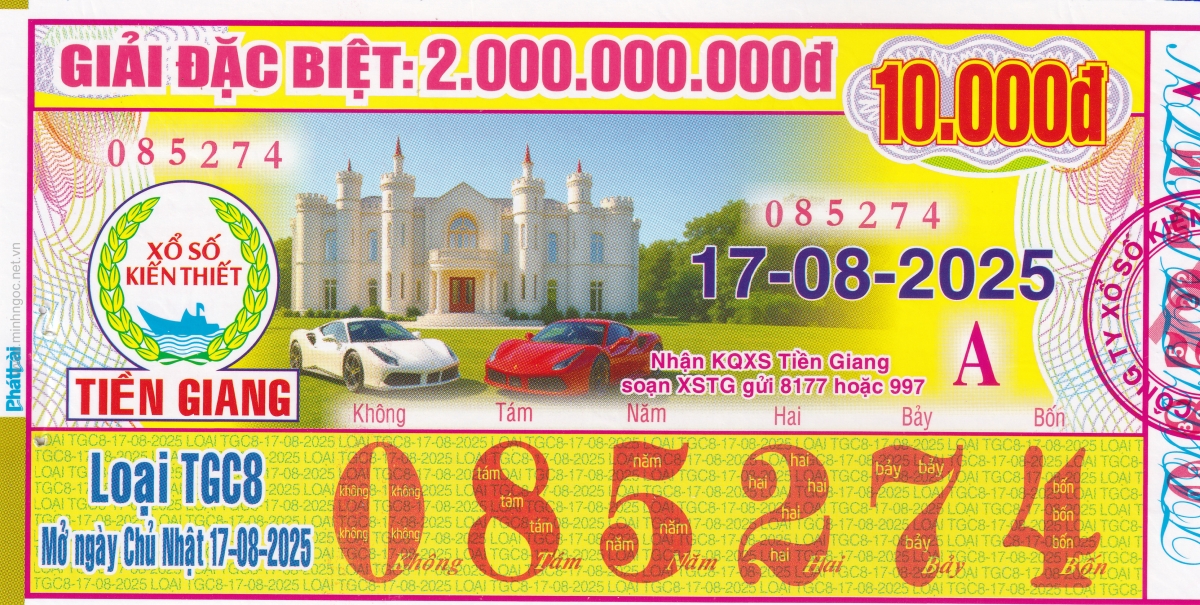 Mẫu vé kiểm tra khi đổi số trúng Tiền Giang Ngày: 17/08/2025