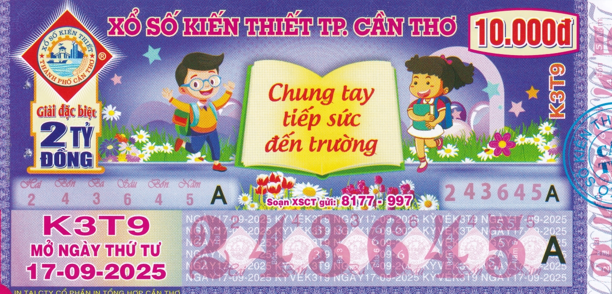 Mẫu vé kiểm tra khi đổi số trúng Cần Thơ Ngày: 17/09/2025