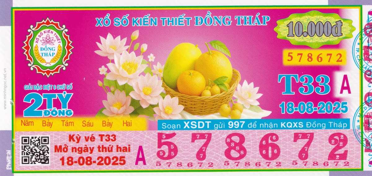 Mẫu vé kiểm tra khi đổi số trúng Đồng Tháp Ngày: 18/08/2025
