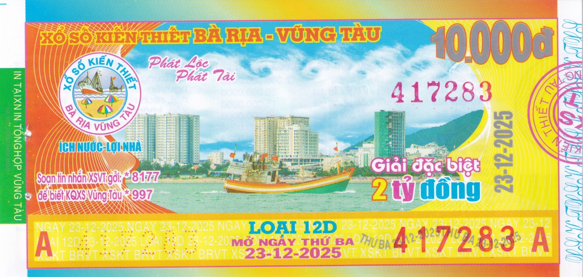 Mẫu vé kiểm tra khi đổi số trúng Vũng Tàu Ngày: 23/12/2025