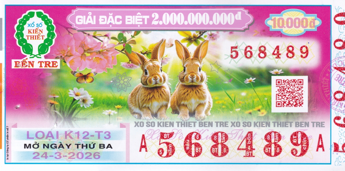 Mẫu vé kiểm tra khi đổi số trúng Bến Tre Ngày: 24/03/2026