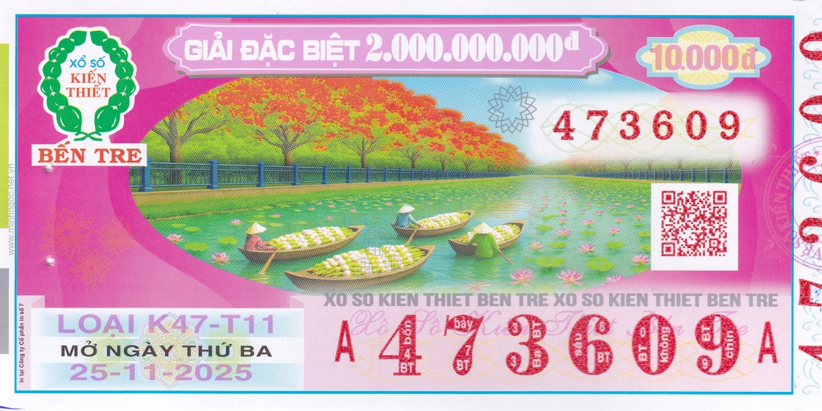 Mẫu vé kiểm tra khi đổi số trúng Bến Tre Ngày: 25/11/2025