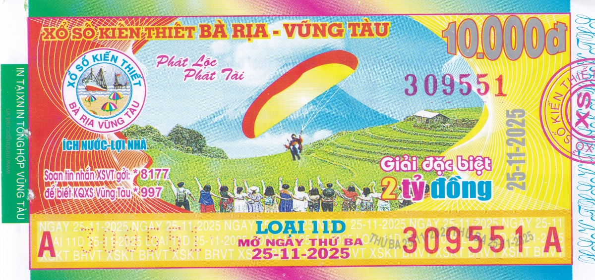 Mẫu vé kiểm tra khi đổi số trúng Vũng Tàu Ngày: 25/11/2025