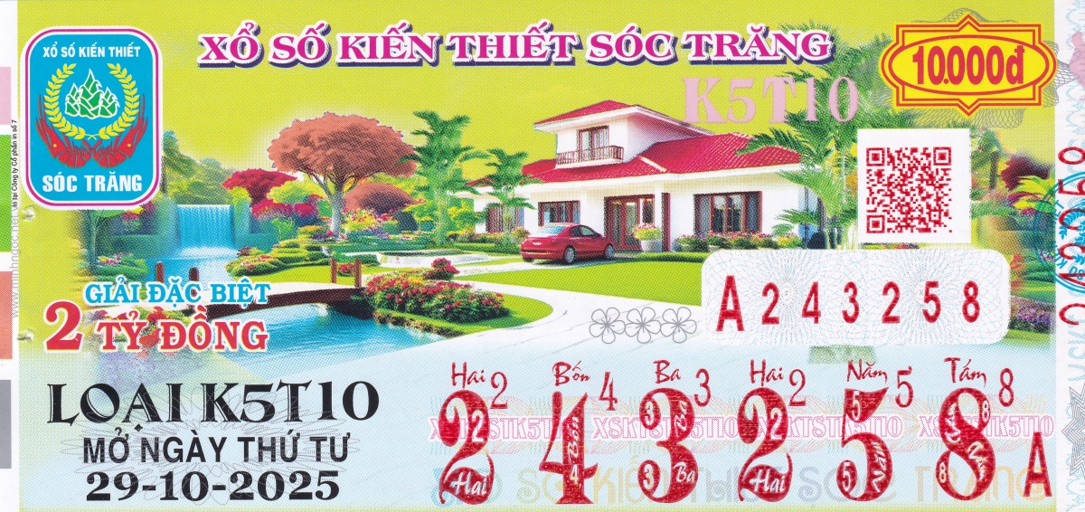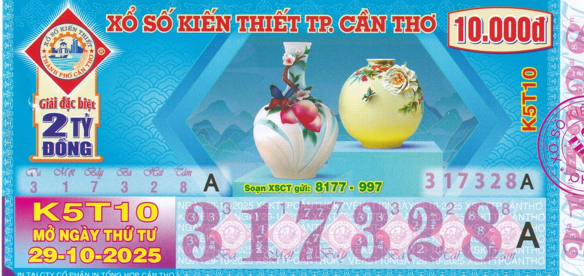 Mẫu vé kiểm tra khi đổi số trúng Cần Thơ Ngày: 29/10/2025