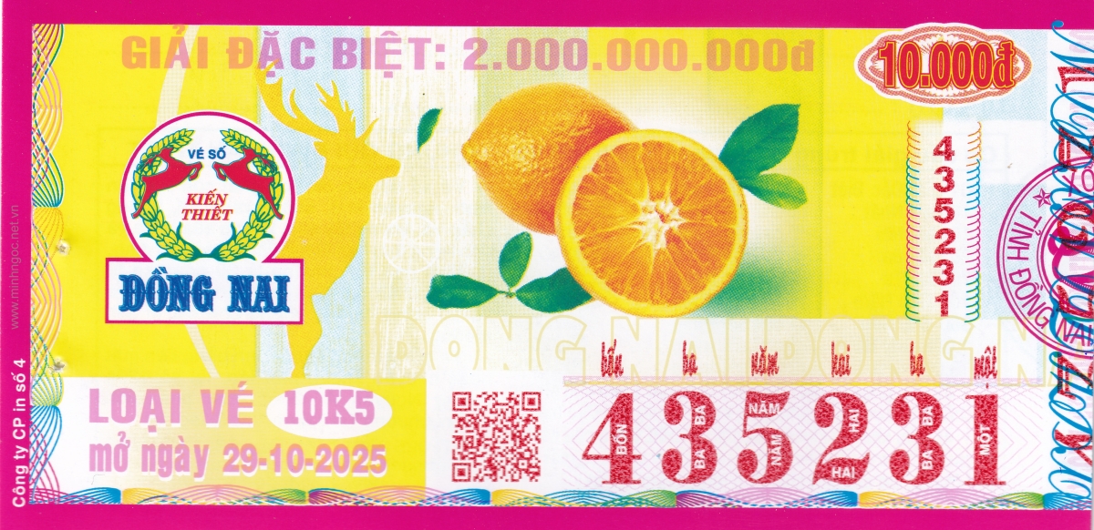 Mẫu vé kiểm tra khi đổi số trúng Đồng Nai Ngày: 29/10/2025
