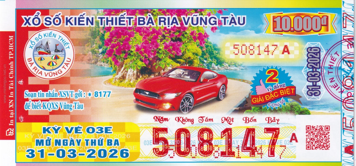 Mẫu vé kiểm tra khi đổi số trúng Vũng Tàu Ngày: 31/03/2026